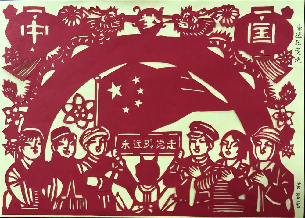 园区运营公司黄莹莹的作品《永远跟党走》获得三等奖,作品剪裁复杂、线条细致、寓意深刻,党就像一位母亲,时刻关怀、体贴着我们,充分展示了大家坚定一心向党,永远跟党走的决心。