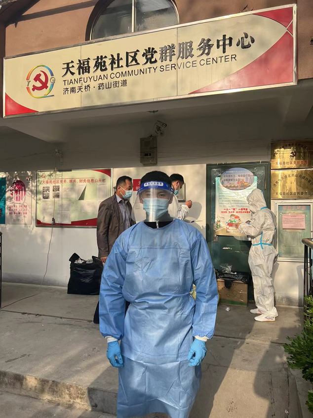 4月27日一早,来自济南科技创业投资集团有限公司黄金和张泽阳就赶赴胥家村,站好健康查验点的第一班岗;济南经发基金管理有限公司的崔家浩与天桥区天福苑检测点人员正做着做好核酸检测维持秩序工作;济南产发资产管理有限公司的任政分配到槐荫区兴福街道济西社区,与其他参与防疫的人员一起接受岗前培训后,迅速上岗;济南经发中小企业服务有限公司的谢炳怡与小鸭集团的刘玉峰、金德利集团的刘相涛一起前往高新区临港街道,接受工作任务。随后,赵梓淇、董振兴、高志翔、张乐等几名同事也投身于防疫的志愿者队伍中。